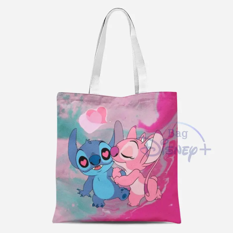 Cartoon Disney Lilo Stitch Shoulder Bags Women's Bag 2023 Trend White Cute Canvas Handbag High Capacity Tote Girl Shoppaing Bag