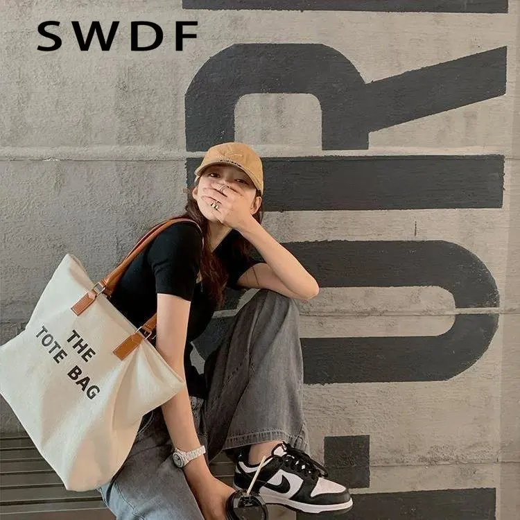 NEW Brands Canvas Tote Women Handbag Casual Letter Shopper Bags for Women 2023 Designer Shoulder Crossbody Bag Women's Bag Ins