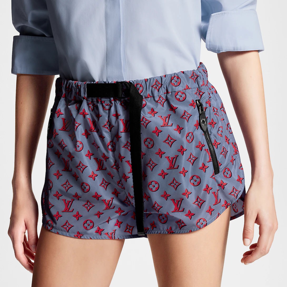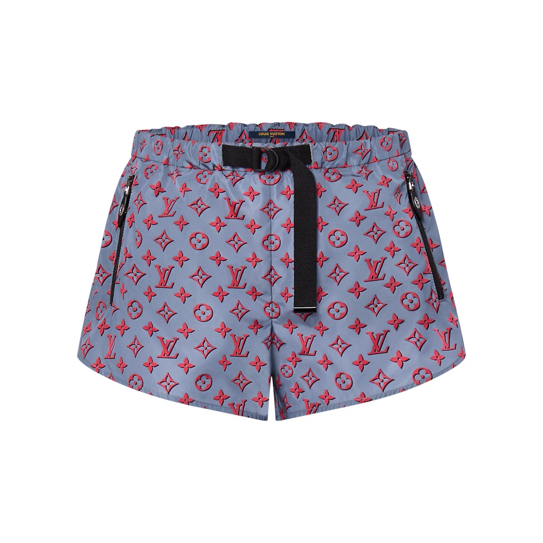 Inspired by a seasonal 3D Monogram pattern in lightweight nylon, these jogging shorts have a new vintage silhouette with rounded overlapping sides, while they're fitted with a D-ring belt and zip pockets to breathe a sporty look into the classic design.