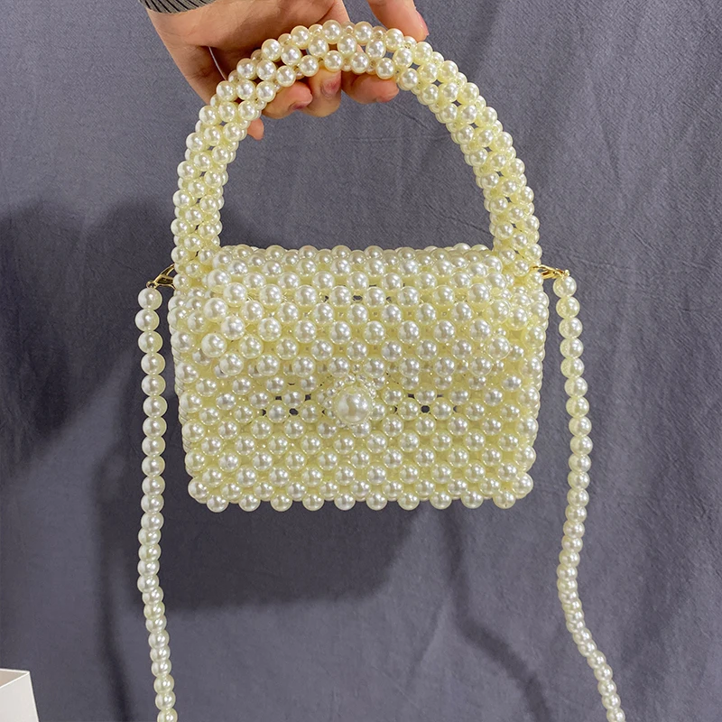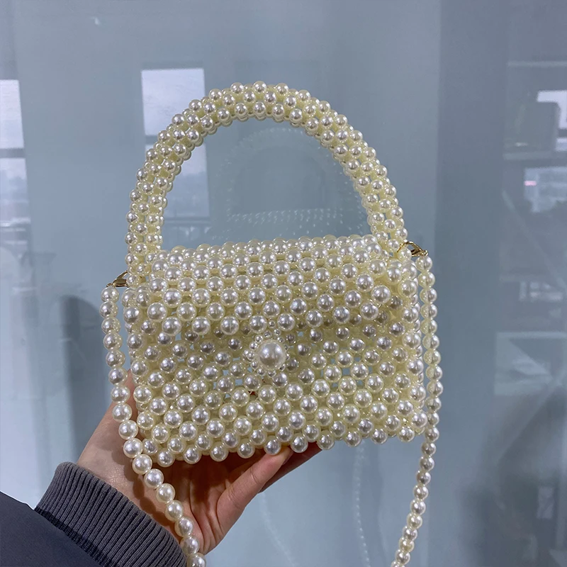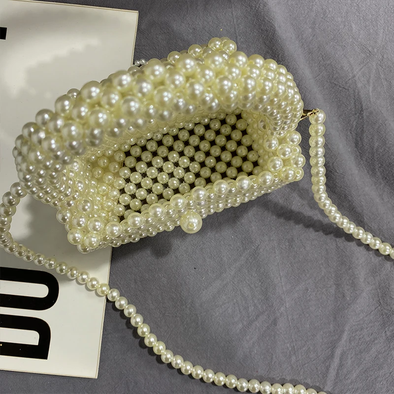 Niche Design Handmade Pearl Hollow Women Party Daily Bag 2022 New Chain High Quality Ins Mini Shoulder Underarm Messenger Purse