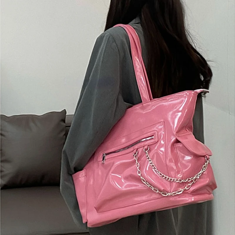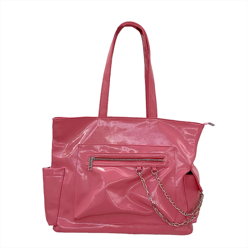 MBTI Pink Tote Bags for Women Luxury Designer Large Capacity Leather Shoulder Bag Korean Style Fashion All-match Female Handbags