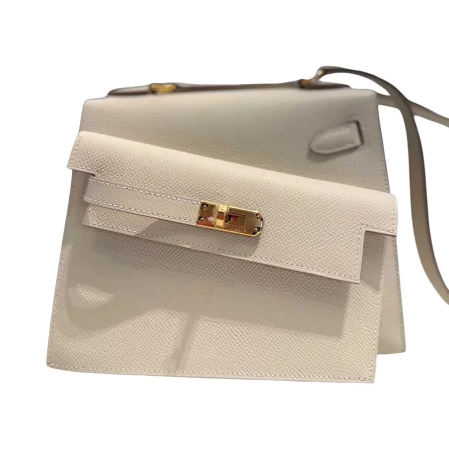 Túi Đeo Chéo Nữ Hermès Craie Kelly 20 En Desordre Sellier Epsom Gold Hardware Limited Edition Màu Trắng Kem
